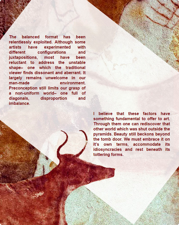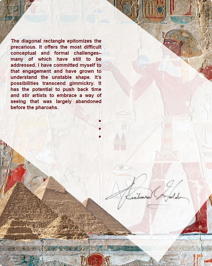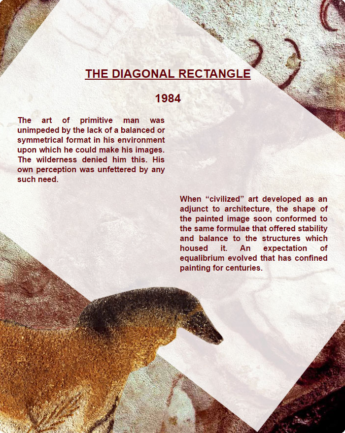 Graphic "The Diagonal Rectangle 1984", description by artist, Richard Gold, over primitive drawings -  Part 3